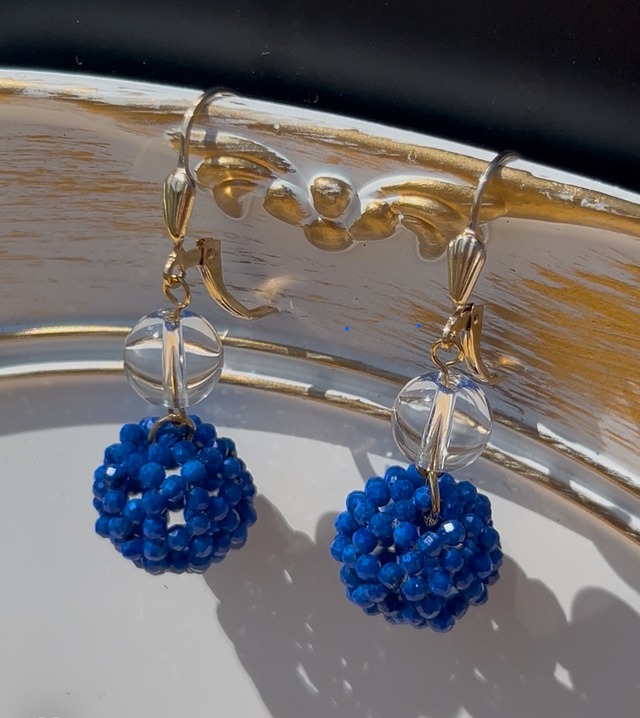 [オーダー品]フラーレンピアス【ラピスラズリ&水晶】